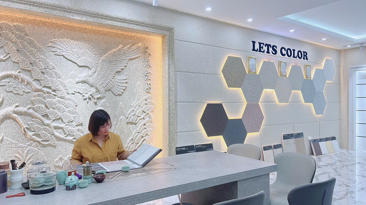 Bên cạnh bảng màu, sơn đá LETS COLOR còn có tấm mẫu giúp quý khách hình dung rõ ràng về màu sắc, đặc tính của dòng sơn.