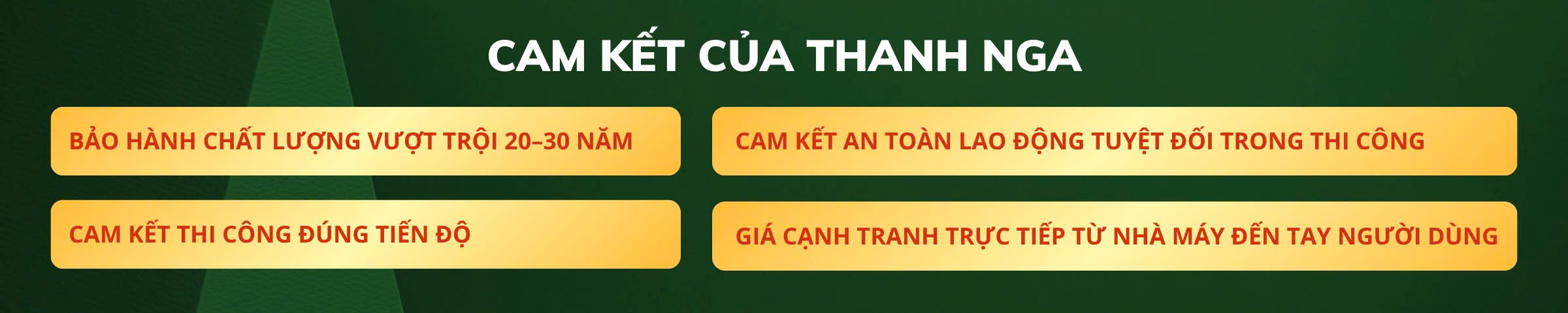 Lời đầu tiên, thay mặt ban lãnh đạo, tập thể cán bộ và toàn thể công nhân viên của Thanh Nga Paint, chúng tôi xin gửi lời chào thân mật và lời chúc sức khỏe, thịnh vượng tới tất cả Quý khách hàng, Quý đối tác. Chúng tôi muốn bày tỏ lòng biết ơn sâu sắc đến sự đồng hành bền vững cũng như sự tin tưởng của Quý khách hàng, Quý đối tác đã ưu ái dành cho Thanh Nga Paint trong suốt những năm qua.