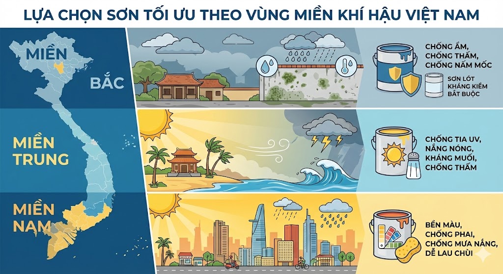 Chọn sơn theo khu vực: Bắc – Trung – Nam