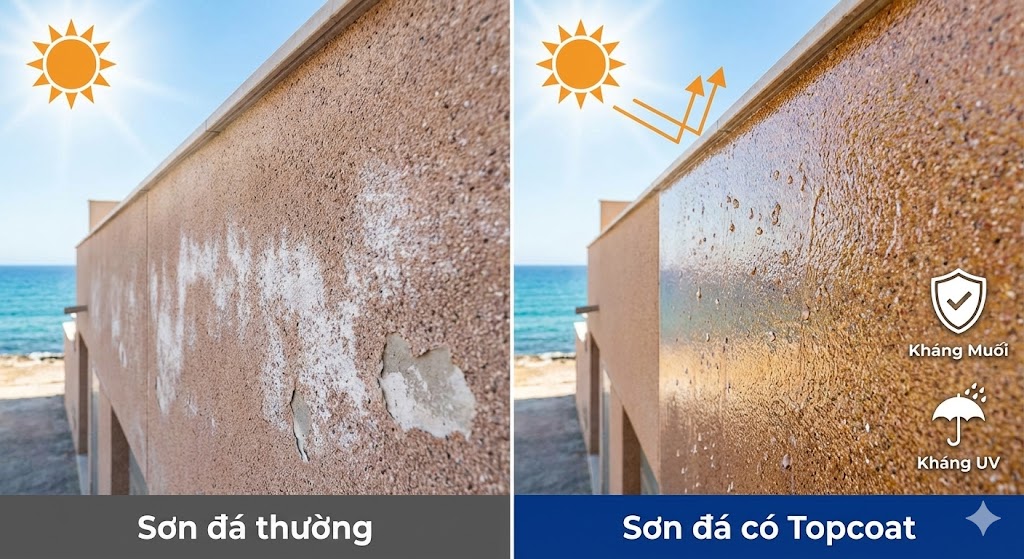 4. Sơn đá có lớp phủ (Topcoat) kháng muối – kháng tia UV