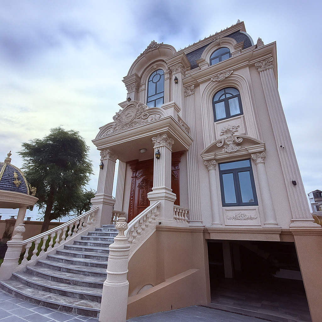 Dù là biệt thự cổ điển, hiện đại hay tân cổ điển, sơn đá đều có thể đáp ứng nhờ đa dạng màu sắc và hiệu ứng bề mặt: granite, marble, sand effect, vân mây…